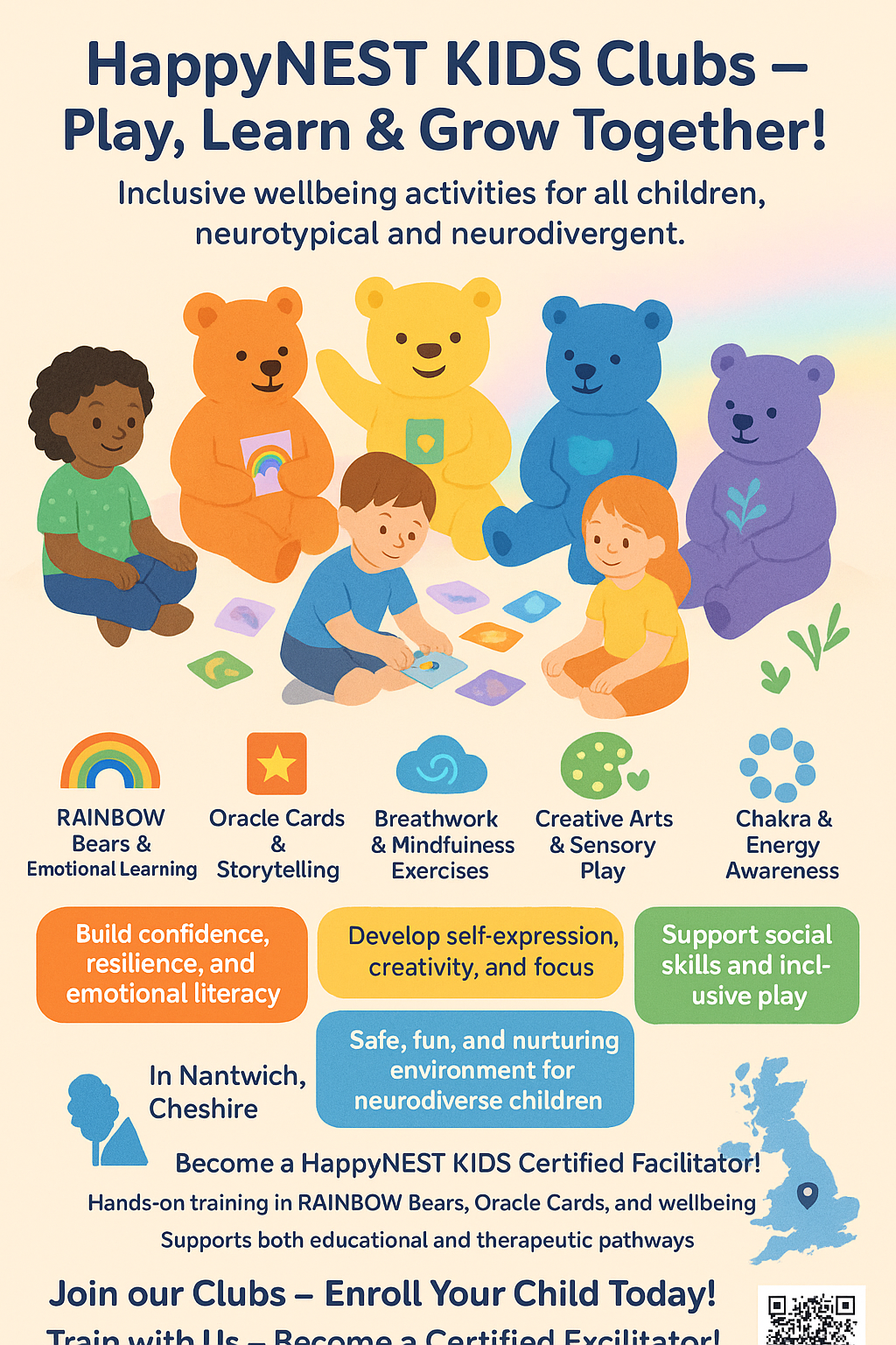 This foundational book leads into the RAINBOW Bears children's book series, where each bear embodies one of the seven steps/colours, helping children learn through story, play, and imagination. Both the Method and the stories are embedded in the HappyNEST KIDS Clubs curriculum, ensuring that the ideas are tested, playful, and accessible in real-world family and community settings.