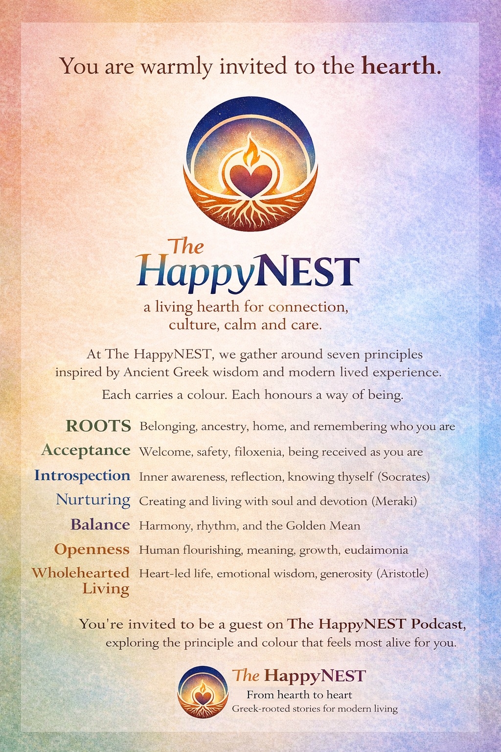 The HappyNEST Podcast is a warm, soulful space inspired by Hestia, the Greek goddess of the hearth, home, and sacred flame, where ancient Greek wisdom meets modern life.